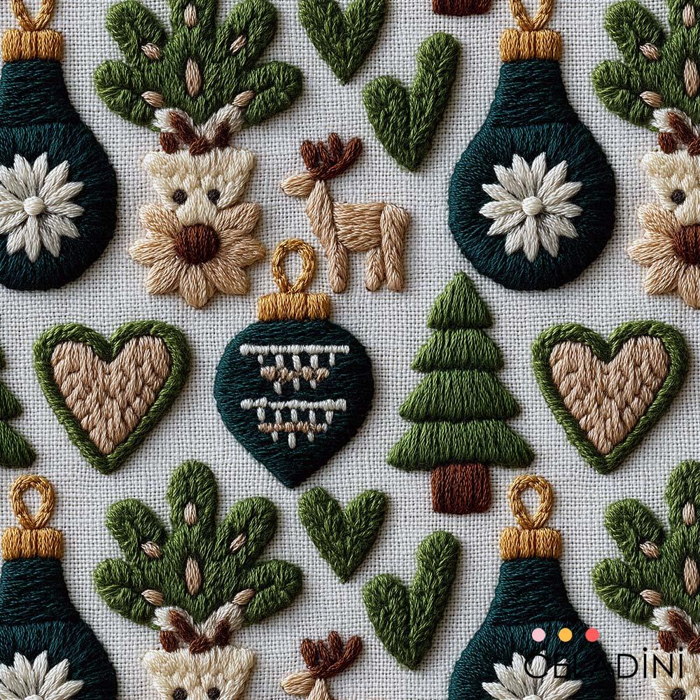 3D Nakış Efektli Süslemeler Yılbaşı Kumaşı